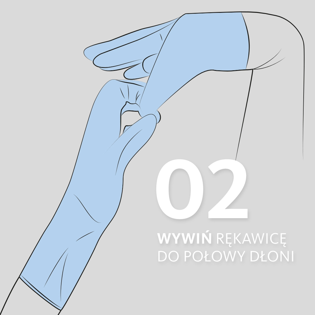 – dotykanie wnętrza rękawicy niedezynfekowaną dłonią,