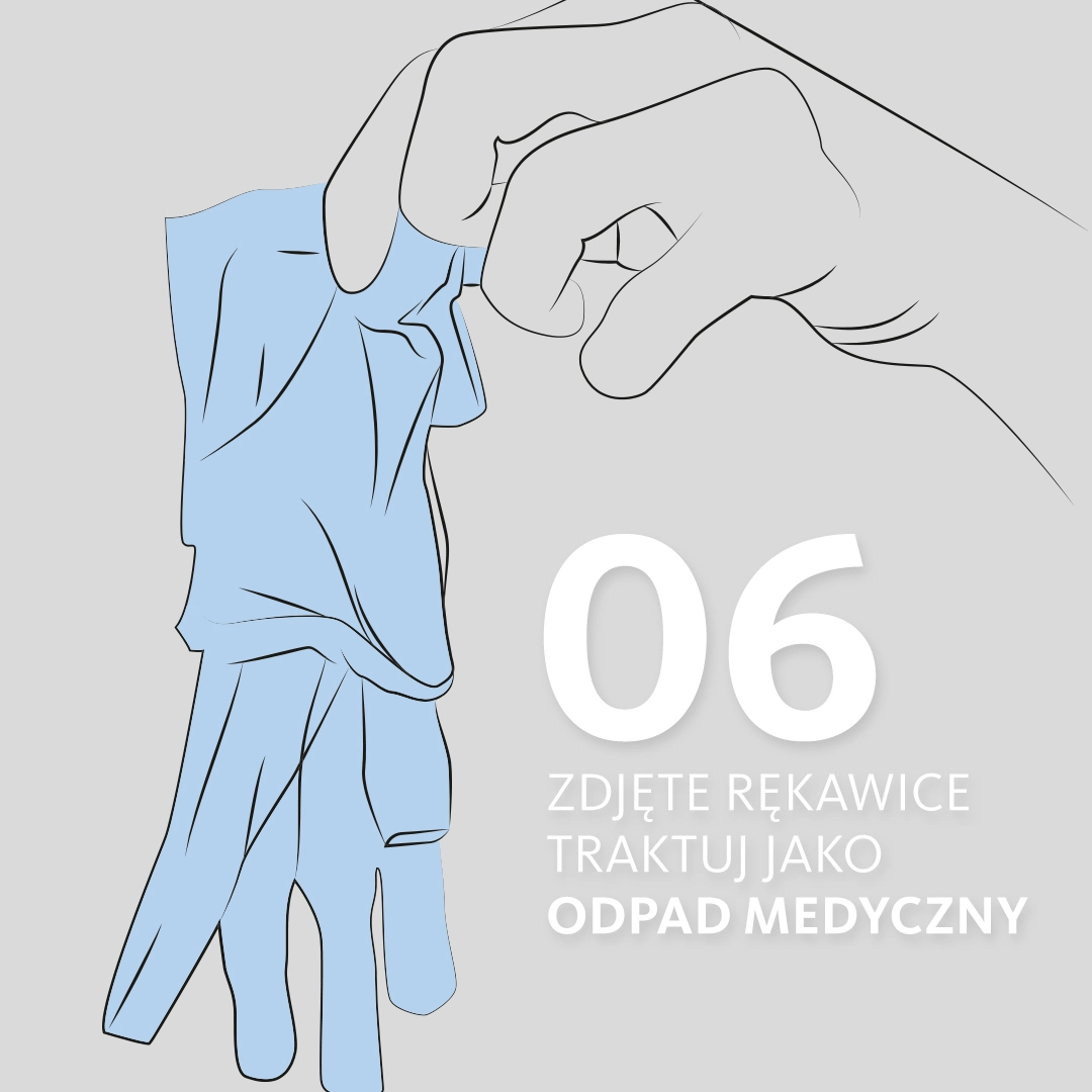 – korzystanie z telefonu oraz dotykanie elementów przestrzeni wspólnej (klamek, poręczy) w sytuacji, gdy rękawice mają pełnić funkcję bariery mikrobiologicznej. Do tego dochodzi jeszcze jedno: konieczność zmiany rękawic we właściwym momencie.