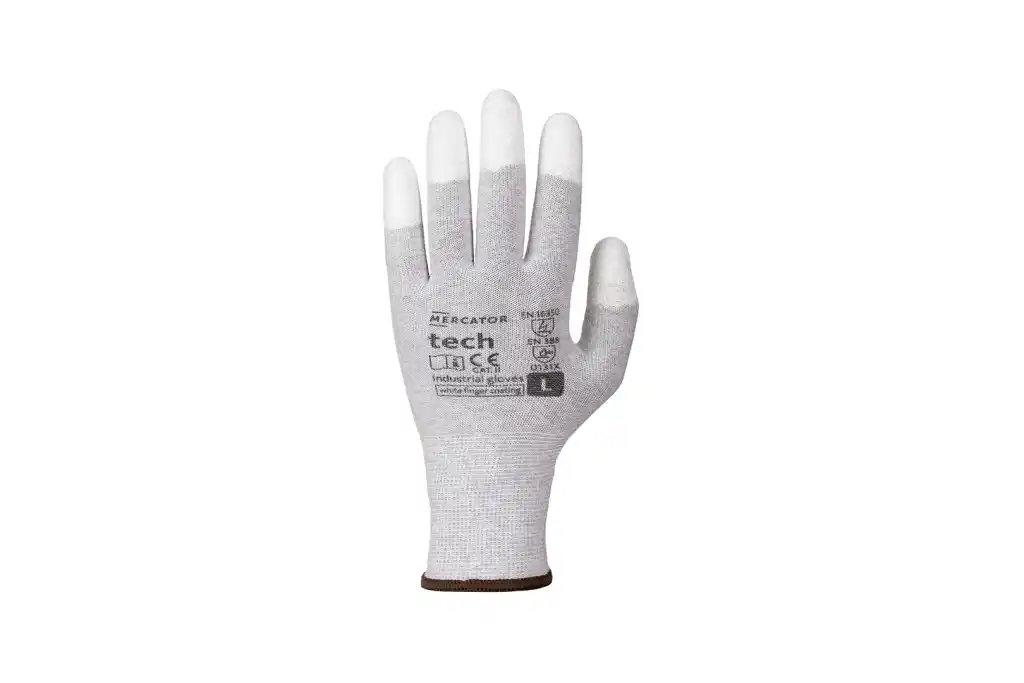 MERCATOR tech rękawice robocze, szare, poliestrowe, powlekane na końcach palców białym poliuretanem