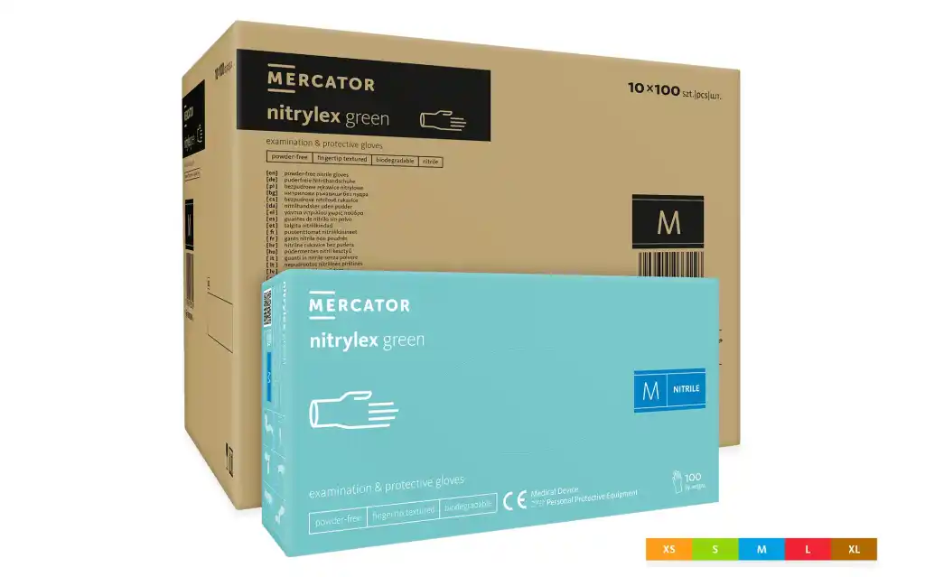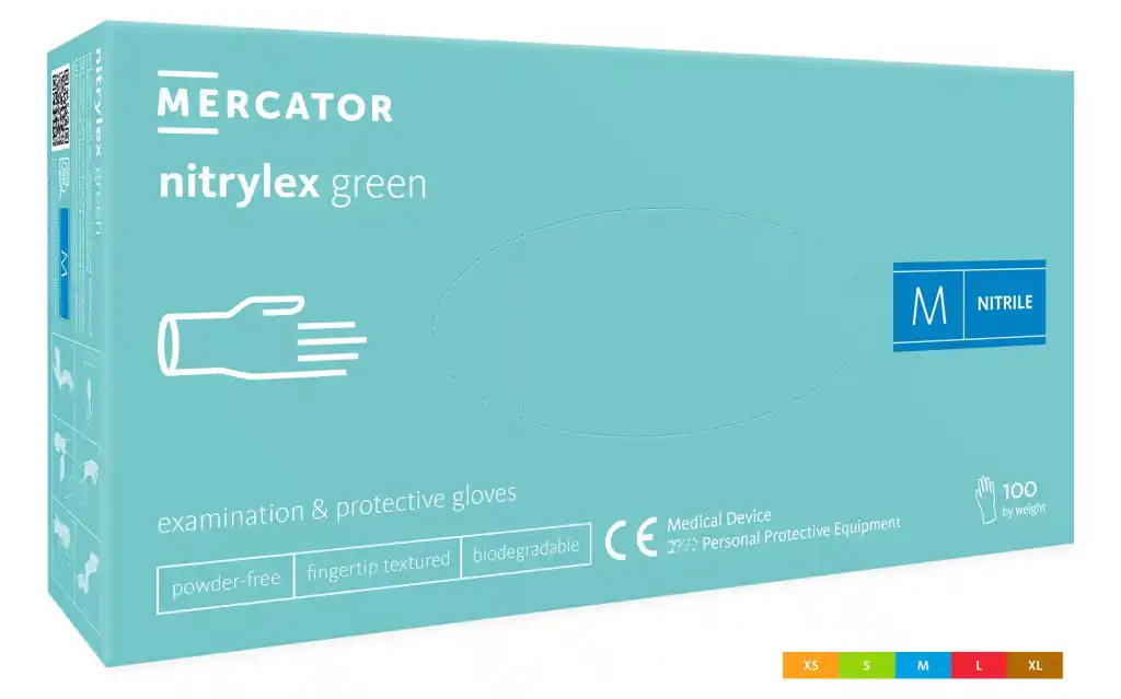- MERCATOR nitrylex green 100 szt. rękawice diagnostyczne i ochronne, nitrylowe, bezpudrowe, zielone, biodegradowalne