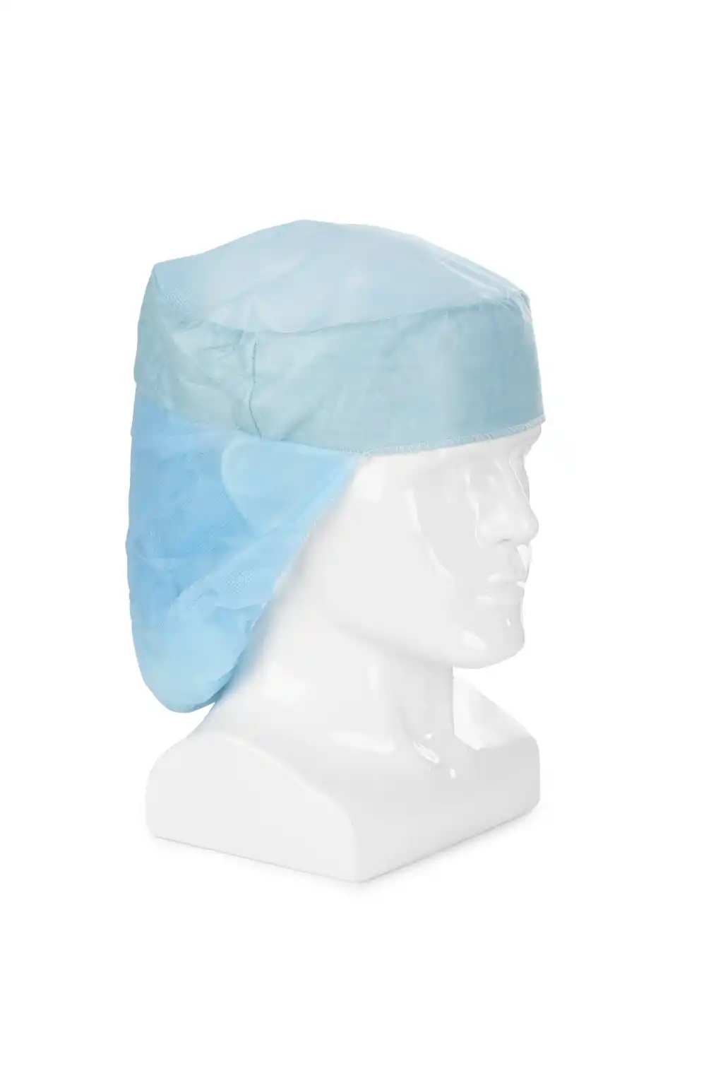 z włókniny Spunlace, czepek z potnikiem o konstrukcji podtrzymującej długie włosy użytkownika, 50 sztuk w opakowaniu.