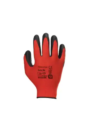 MERCATOR tech rękawice robocze, czerwone, poliestrowe, powlekane lateksem w kolorze czarnym